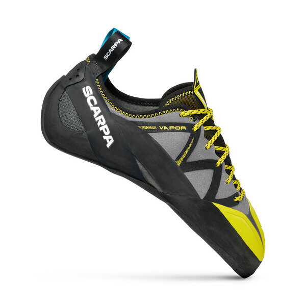 Der VAPOR bietet Kantenstabilität mit Vielseitigkeit für technische Routen. Der leichte Downturn und eine mittel bis stark angewinkelte Zehenbox ergeben einen ausgewogenen Schuh, der für alle Kletterstile eine hervorragende Performance bietet.